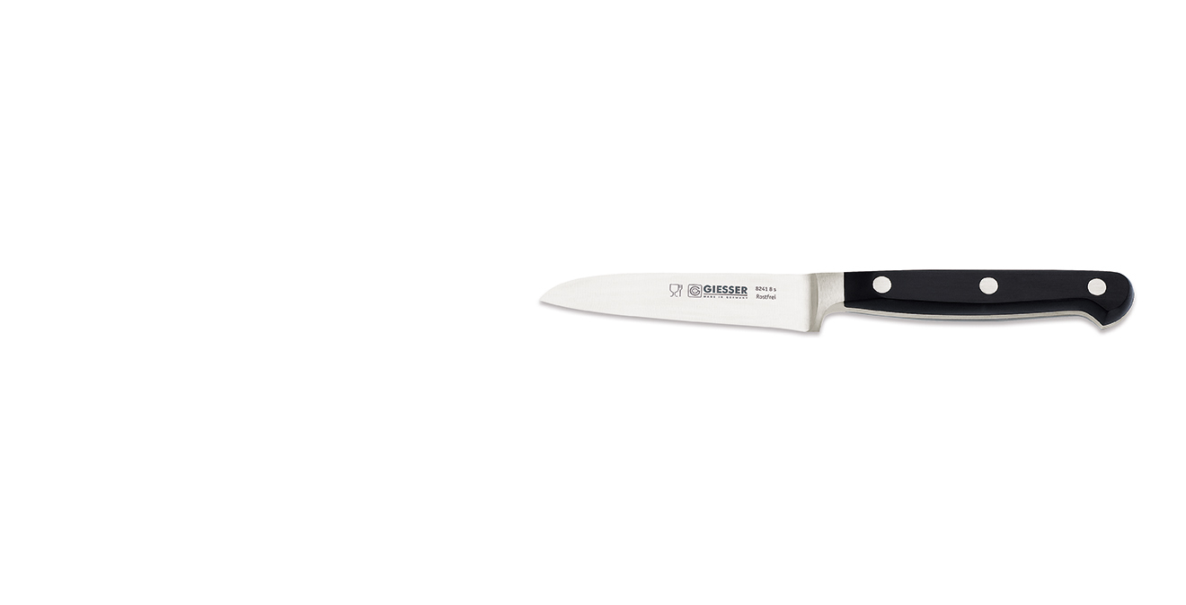 Aici avem o gamă de cuțite de gătit forjate tradițional cu prăsele din material POM. Disponibile în diferite culori.