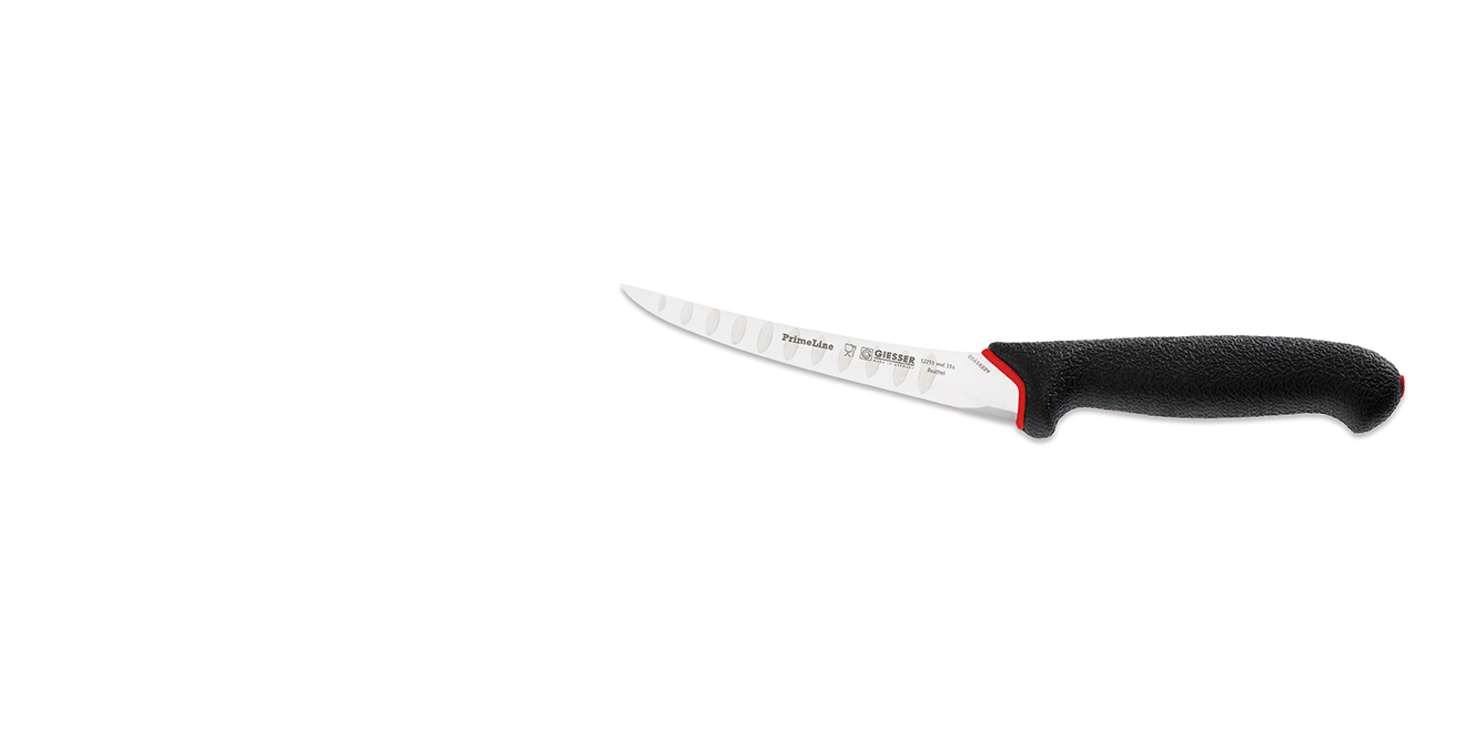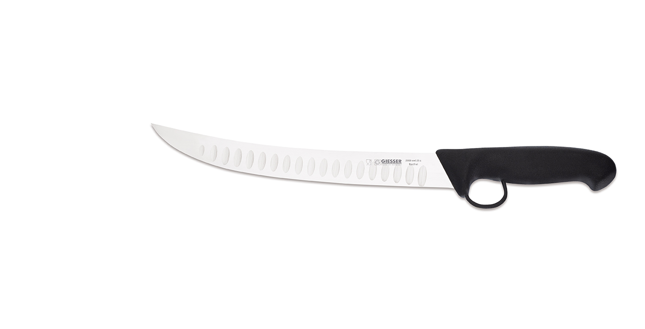 Un cuțit cu o fațetă cu degajări (scobită) care alunecă ușor în orice material. Taie eficient cu efort minim.