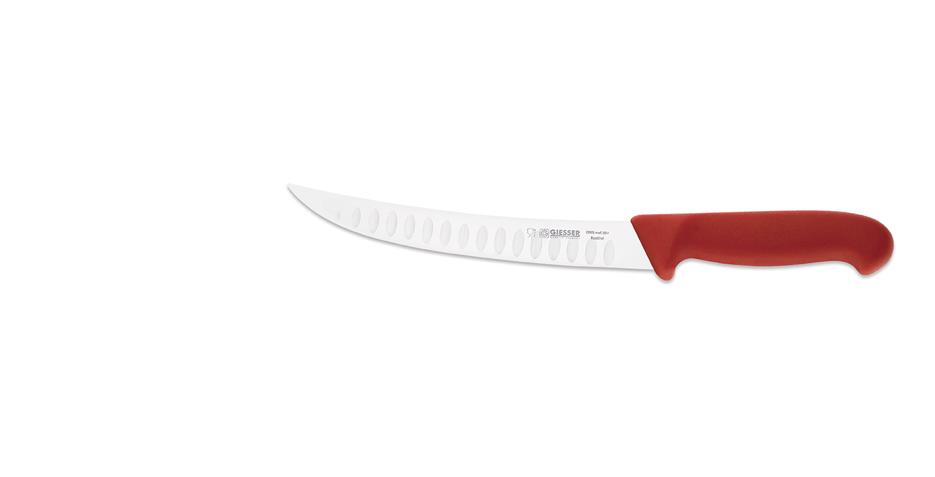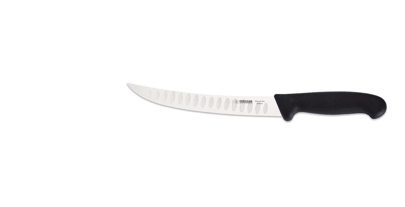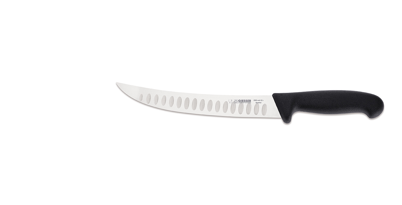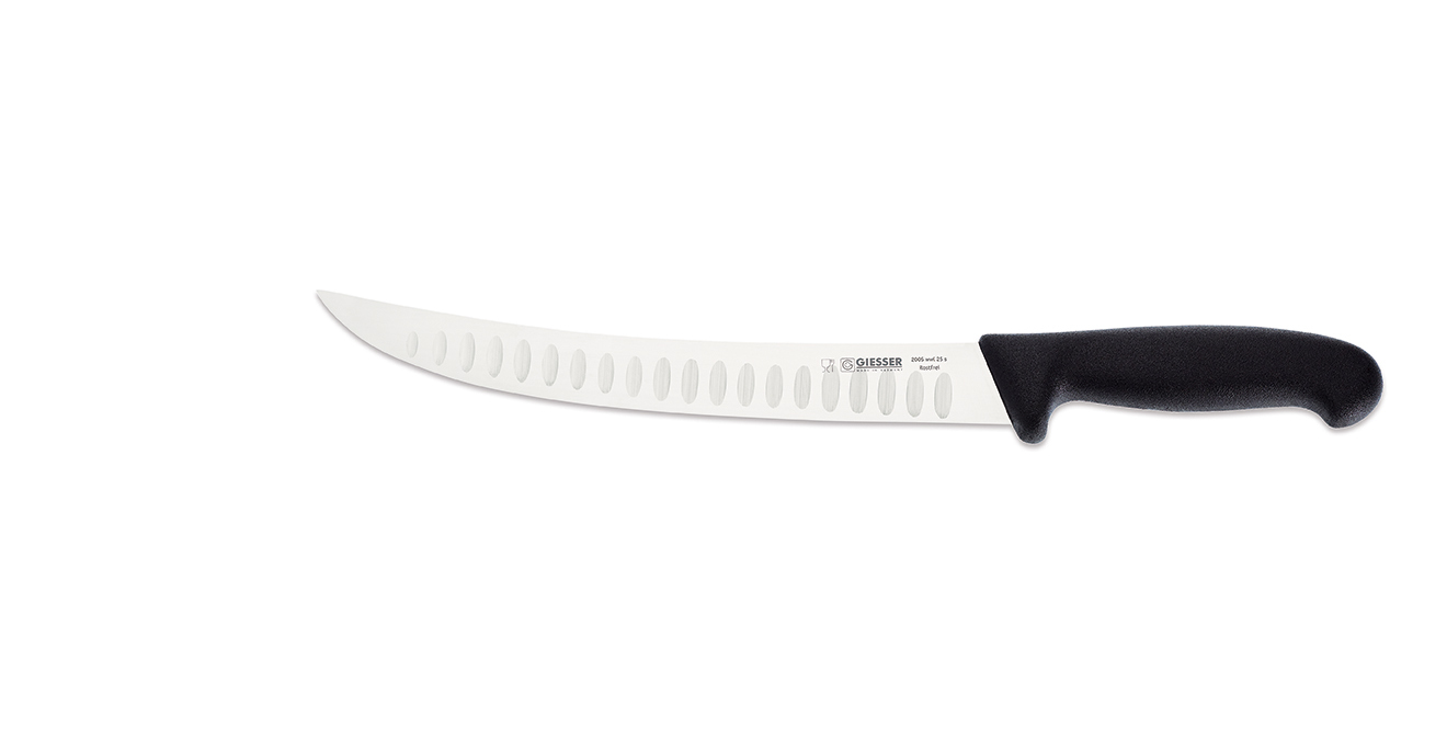 Un cuțit cu o fațetă cu degajări (scobită) care alunecă ușor în orice material. Taie eficient cu efort minim.