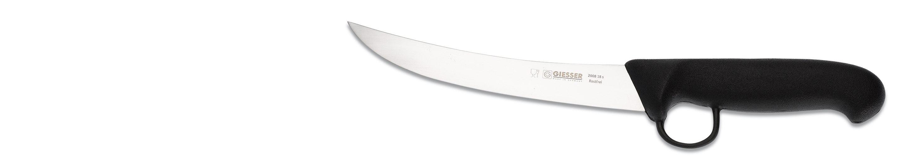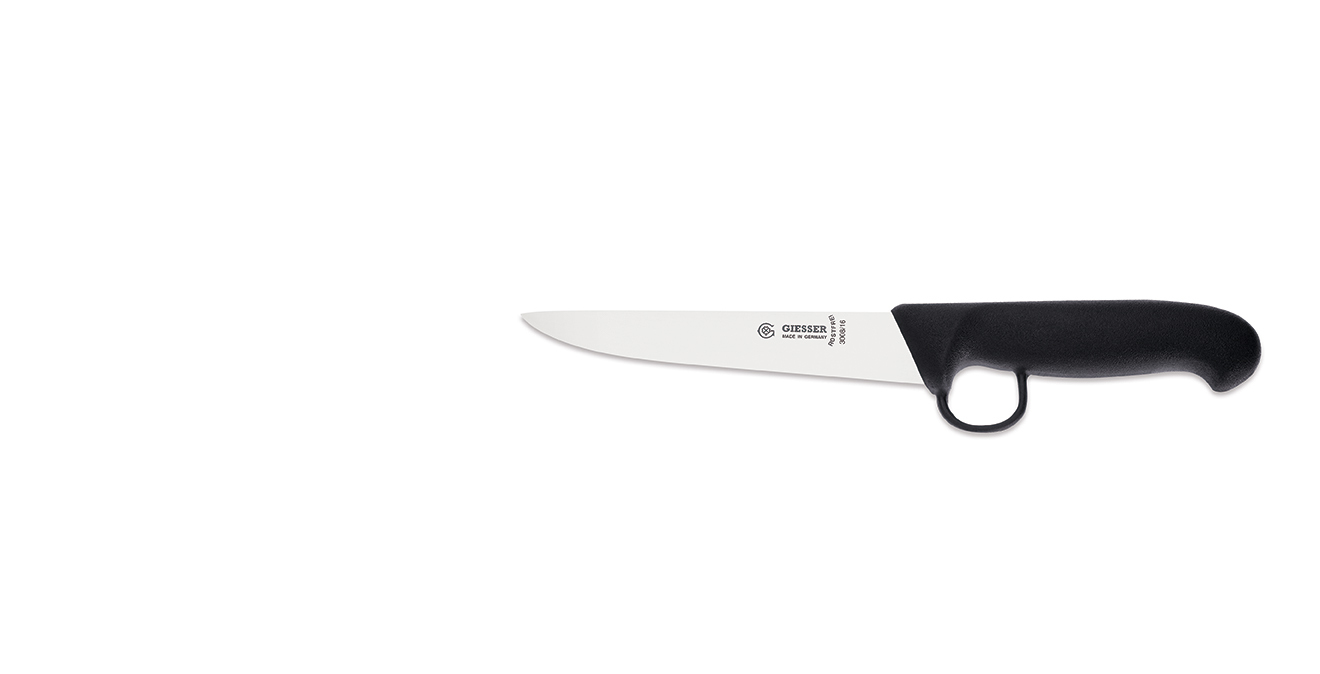 Un inel din prăsea previne alunecarea mâinii în timpul tăierii, mai ales la înfigere. Mâner de volum mediu