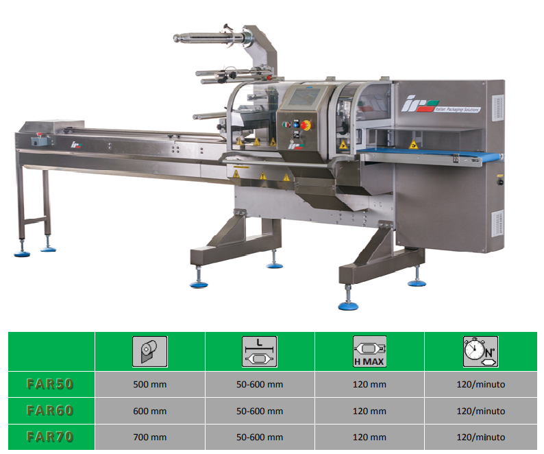 Mașină de ambalare orizontală FAR IPSTECH. FAR este conceput „azi” pe baza experienței de „ieri” și reprezintă sinteza perfectă între cunoștințele mecanice și progresul tehnologic.