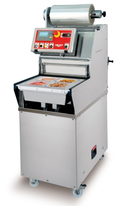 Utilizat perntru tavi cu ambalare in vid. Ambalare sub vid MAP și Skin-Pack. Matriță personalizabilă. Potrivit pentru tava de 115 mm. Fara placa de etansare, matrite sau compresor de aer. Pompa de vid 60m³/h.