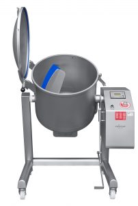 unitate de comanda control cu 99 de programe, sistem de inregistrare a datelor conform cerintelor HACCP, actionare cu variator de turatie, sistem de racire directa, dispozitiv de inclinare a cuvei cu actionare electrica cu pozitionare automata a cuvei, brat de masare inclusiv racleta cu actionare la buton